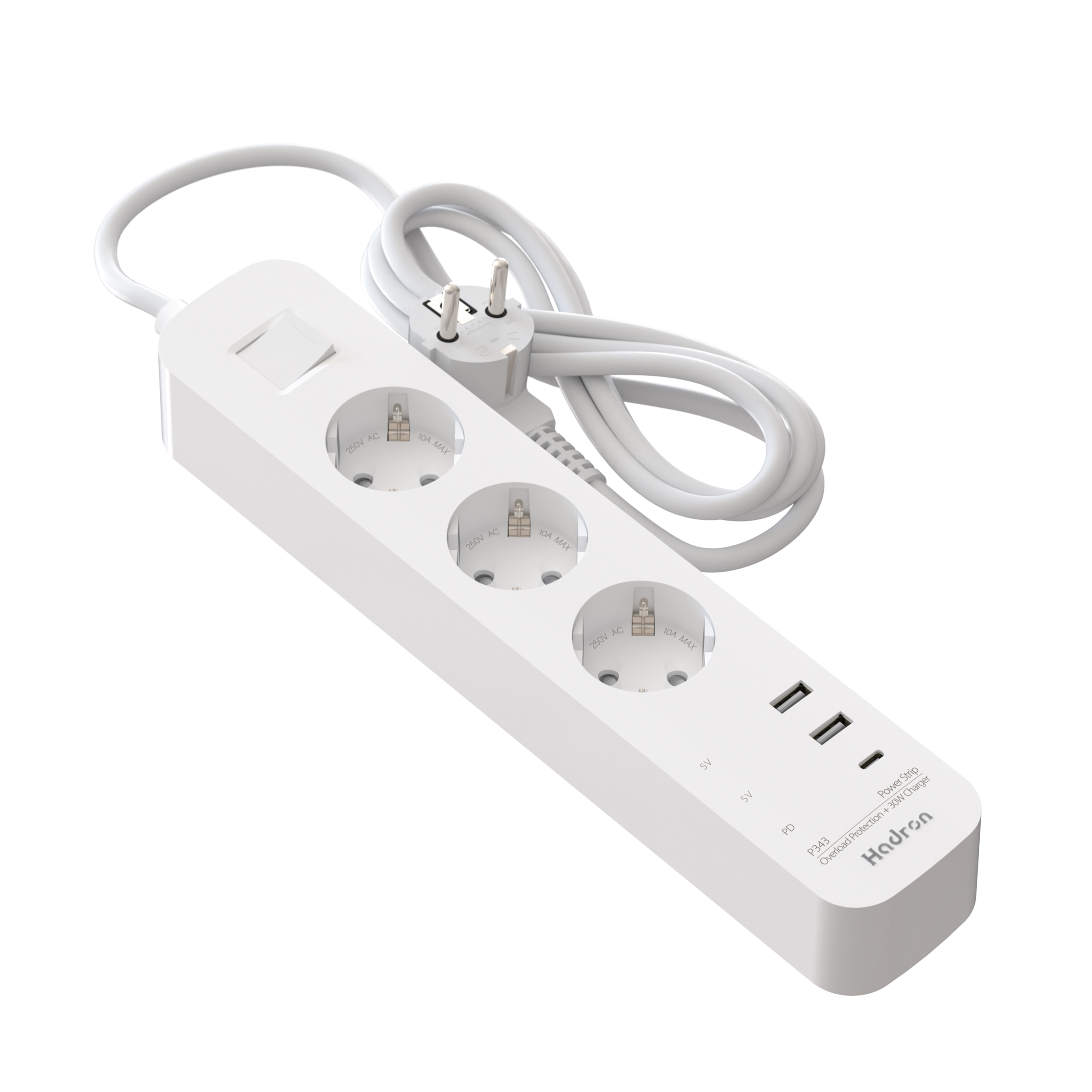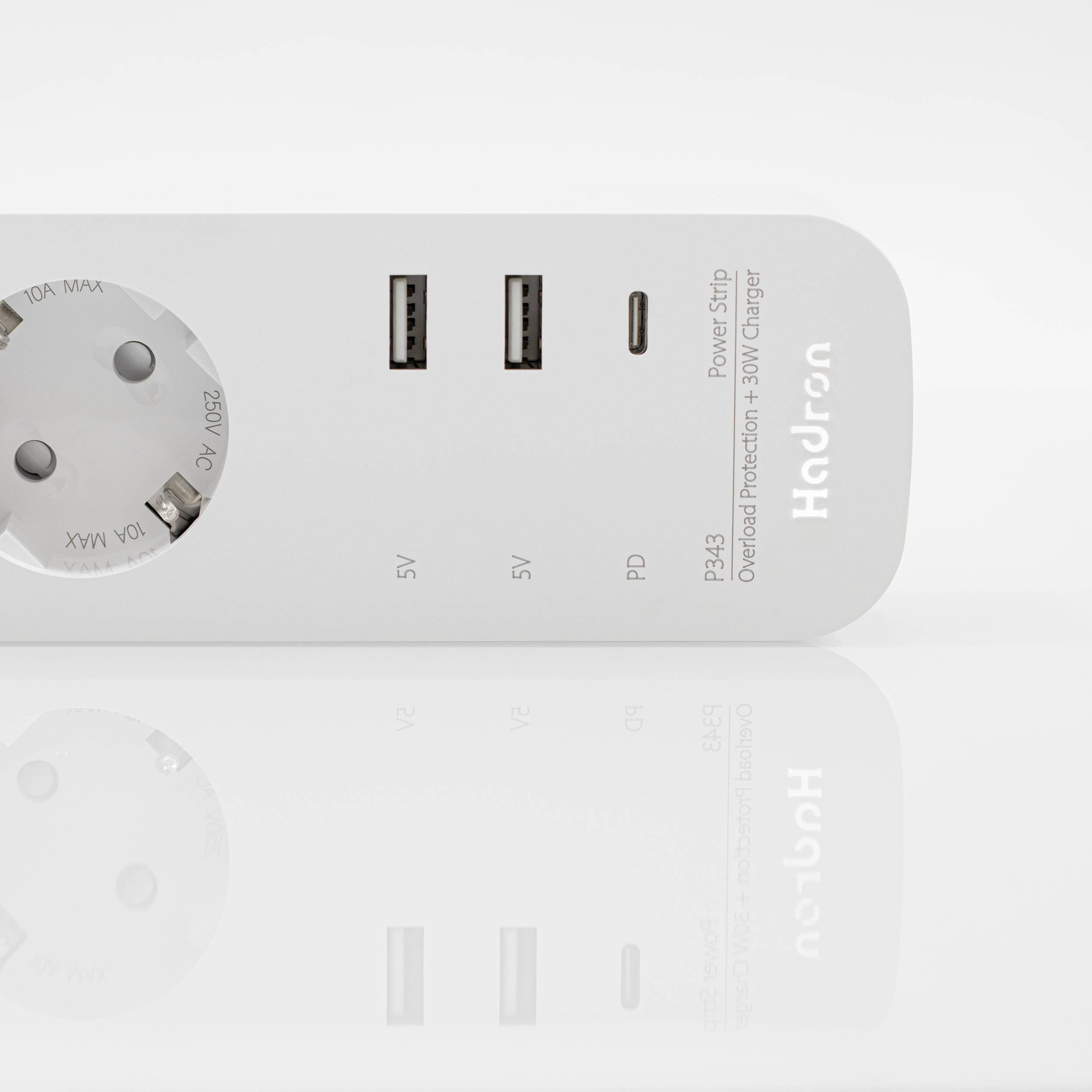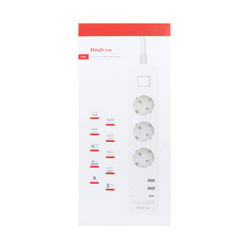 خرید چندراهی برق هادرون Hadron مدل P343 با کابل 1.8 متری و شارژر 30 وات با گارانتی 36 ماهه هادرون توان