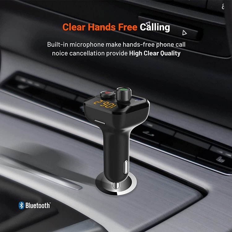 Porodo Wireless FM Transmitter Car Charger PD-BT201D-BKشارژر فندکی دو پورت پرودو Porodo مدل PD-BT201D-BK فست شارژ
